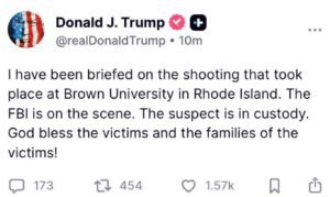 AMERICA के ब्राउन यूनिवर्सिटी में फाइनल एग्ज़ाम के दौरान गोलीबारी, 2 लोगों की मौत, 9 लोग घायल, राष्ट्रपति ट्रंप ने जताया शोक