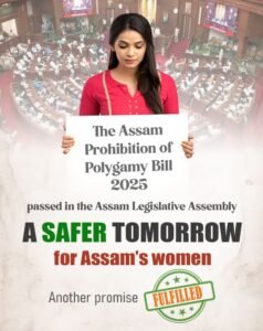 भारत के उत्तर-पूर्वी राज्य Assam की विधान सभा ने एक ऐतिहासिक फैसला लेते हुए Assam Prohibition of Polygamy Bill, 2025 पारित कर दिया। इस नए कानून का उद्देश्य राज्य में बहुविवाह (एक व्यक्ति द्वारा एक से अधिक वैध विवाह करना) को प्रतिबंधित करना है। इसके तहत पहली पत्नी के जीवन में दूसरी या आगे की शादी करने को दंडनीय अपराध माना जाएगा।यदि कोई व्यक्ति पहली शादी के दौरान दूसरी शादी करता है यानी पहली पत्नी जीवित है और वैवाहिक बंधन कानूनी रूप से समाप्त नहीं हुआ है तो उस व्यक्ति को सात साल तक imprisonment की सज़ा हो सकती है। यदि पहली शादी को छिपाकर दूसरी शादी की जाती है अर्थात जान-बूझकर पहले विवाह को छुपाकर विवाह सम्पन्न किया जाए तो सज़ा और भी कड़ी होगीइस धर्मनिरपेक्ष कानून के तहत, हिंदू, मुस्लिम, ईसाई और अन्य धर्मों के लिए समान रूप से बहुविवाह निषिद्ध होगा।