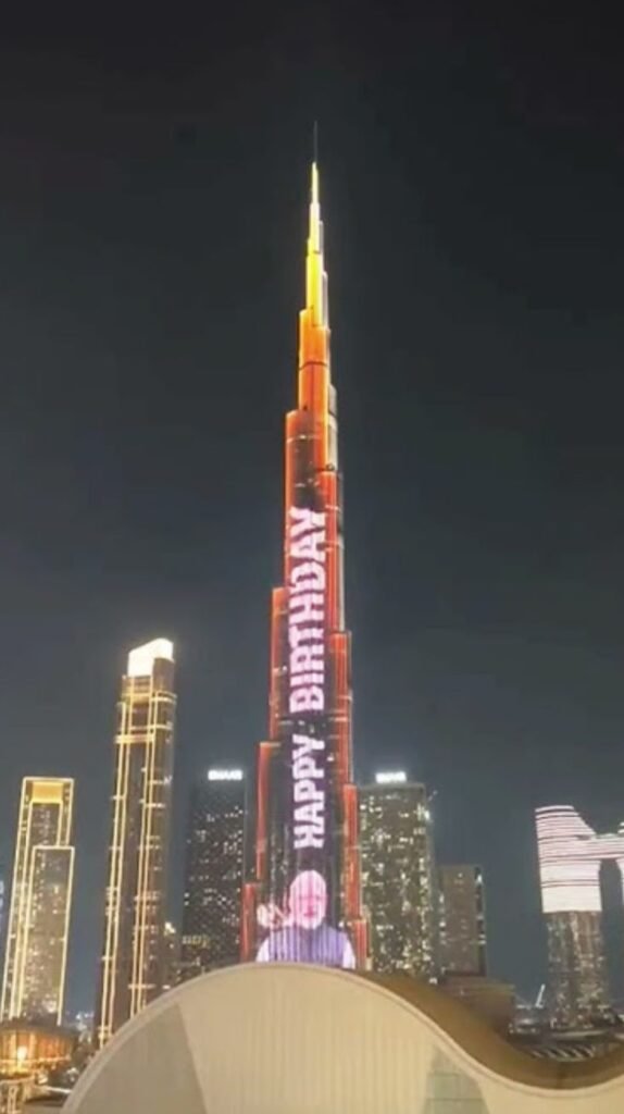 प्रधानमंत्री नरेंद्र मोदी के 75वें जन्मदिन के अवसर पर दुबई की विश्वप्रसिद्ध गगनचुंबी इमारत बुर्ज खलीफा विशेष रोशनी से जगमगा उठी। इस मौके पर इमारत पर मोदी का चित्र, भारतीय ध्वज और ‘हैप्पी बर्थडे पीएम मोदी’ जैसे संदेश प्रदर्शित किए गए।