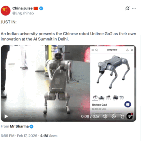 दिल्ली में आयोजित AI Impact Summit का उद्देश्य भारत की आर्टिफिशियल इंटेलिजेंस (AI) क्षमताओं को दुनिया के सामने प्रस्तुत करना था। लेकिन यह आयोजन उस समय विवादों में घिर गया, जब गलगोटिया विश्वविद्यालय द्वारा प्रदर्शित एक रोबोटिक डॉग को लेकर सवाल उठने लगे।