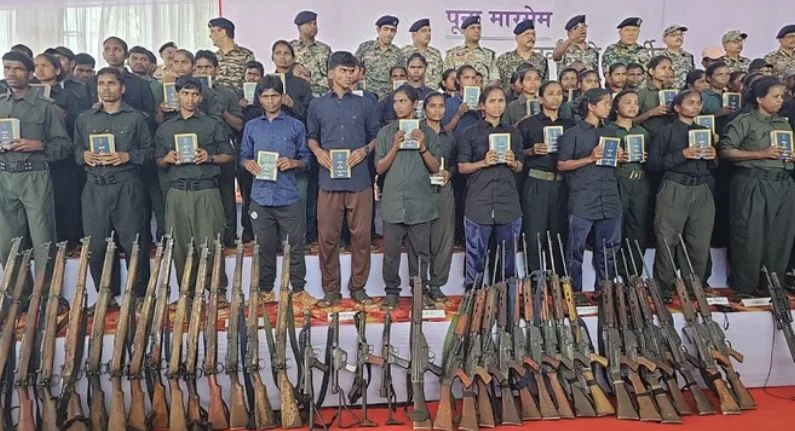 छत्तीसगढ़ के दंडकारण्य क्षेत्र में आज शुक्रवार को कुल 208 नक्सलियों ने संविधान में विश्वास जताते हुए सुरक्षा बलों के सामने आत्मसमर्पण किया और मुख्यधारा में शामिल होने का ऐतिहासिक कदम उठाया। इनमें 98 पुरुष और 110 महिलाएं शामिल हैं। सभी नक्सलियों ने 153 हथियारों के साथ सरेंडर किया है, जो राज्य की सुरक्षा व्यवस्था और नक्सल प्रभावित क्षेत्रों के लिए बड़ी सफलता मानी जा रही है।