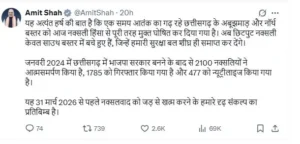 केंद्रीय गृह मंत्री अमित शाह ने भी सोशल मीडिया प्लेटफॉर्म X पर यह जानकारी सांझा करते हुए कहा कि पिछले दो दिनों में छत्तीसगढ़ और महाराष्ट्र में कुल 258 नक्सलियों ने आत्मसमर्पण किया है। इसके साथ ही तीन दिनों में कुल 466 नक्सलियों का आत्मसमर्पण दर्ज किया गया, जो नक्सलवाद के खिलाफ बड़ी सफलता मानी जा रही है।