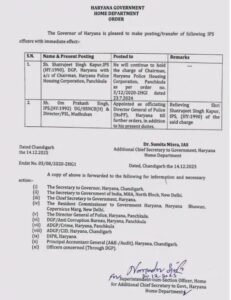 हरियाणा सरकार ने बड़ा प्रशासनिक फैसला लेते हुए IPS अधिकारी शत्रुजीत कपूर को पुलिस महानिदेशक (DGP) पद से कार्यमुक्त कर दिया है। अब उनके पास केवल हरियाणा पुलिस हाउसिंग कॉर्पोरेशन के चेयरमैन का दायित्व रहेगा। वहीं, वरिष्ठ IPS अधिकारी ओपी सिंह को अगले आदेश तक हरियाणा का कार्यवाहक DGP नियुक्त किया गया है। वे अपने मौजूदा कर्तव्यों के साथ यह अतिरिक्त प्रभार संभालेंगे।
