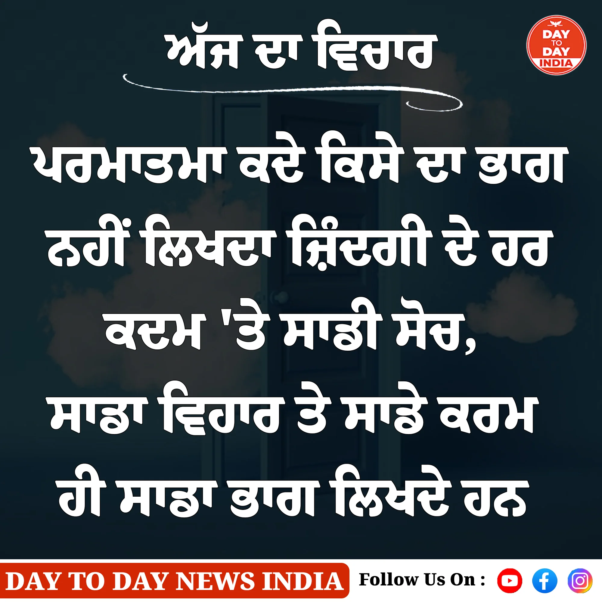 ਅੱਜ ਦਾ ਵਿਚਾਰ ਪਰਮਾਤਮਾ ਕਦੇ ਕਿਸ ਦਾ ਭਾਗ ਨਹੀਂ ਲਿਖਦਾ ਜਿੰਦਗੀ ਦੇ ਹਰ ਕਦਮ ਤੇ