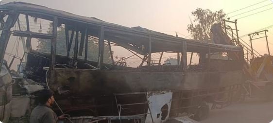 उत्तर प्रदेश के बलरामपुर जिले में सोमवार देर रात फुलवरिया बाईपास पर एक निजी बस और ट्रक की जोरदार टक्कर के बाद भीषण आग लग गई। हादसे में 3 लोगों की जलकर दर्दनाक मौत हो गई, जबकि 24 यात्री गंभीर रूप से झुलस गए, जिनमें से 6 की हालत नाजुक बताई जा रही है। हादसे के बाद मौके पर चीख-पुकार मच गई और बचाव टीमों ने तुरंत राहत कार्य शुरू किया।प्रत्यक्षदर्शियों और पुलिस के अनुसार, यह दर्दनाक घटना रात करीब 2:30 बजे हुई।सुनौली बॉर्डर से दिल्ली जा रही बस UP 22 AT 0245, फुलवरिया चौराहे से गोंडा की ओर बढ़ रही थी। इसी दौरान फुलवरिया ओवरब्रिज की ओर से आ रहा तेज रफ्तार ट्रक UP 21 DT 5237 बस से सीधे भिड़ गया। टक्कर इतनी जोरदार थी कि बस सड़क पर लगभग 100 मीटर तक घिसटती चली गई, सड़क किनारे लगे हाईटेंशन लाइन के खंभे से जाकर टकरा गई,खंभा टूटकर बस पर गिर गया, और बस में करंट फैलने से शॉर्ट सर्किट हुआ और आग लग गई।कुछ ही सेकंड में पूरी बस आग का गोला बन गई और यात्री अंदर ही फंस गए।