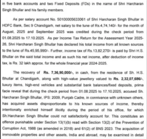 CBI के मुताबिक, भुल्लर ने आंकलन वर्ष 2025-26 के लिए दाखिल आयकर रिटर्न में कुल आय 45.95 लाख रुपए बताई थी।कर चुकाने के बाद उनकी शुद्ध वार्षिक आय लगभग 32 लाख रुपए थी।लेकिन उनके पास सात करोड़ से अधिक नकदी और संपत्ति मिली, जो उनकी ज्ञात आय से कई गुना अधिक है।ब्यूरो का कहना है कि यह भ्रष्टाचार निवारण अधिनियम की धारा 13(1)(ख) और 13(2) के तहत एक स्पष्ट मामला है। यानि उन्होंने “अपने पद का दुरुपयोग करते हुए अवैध रूप से खुद को आर्थिक रूप से लाभान्वित किया।”