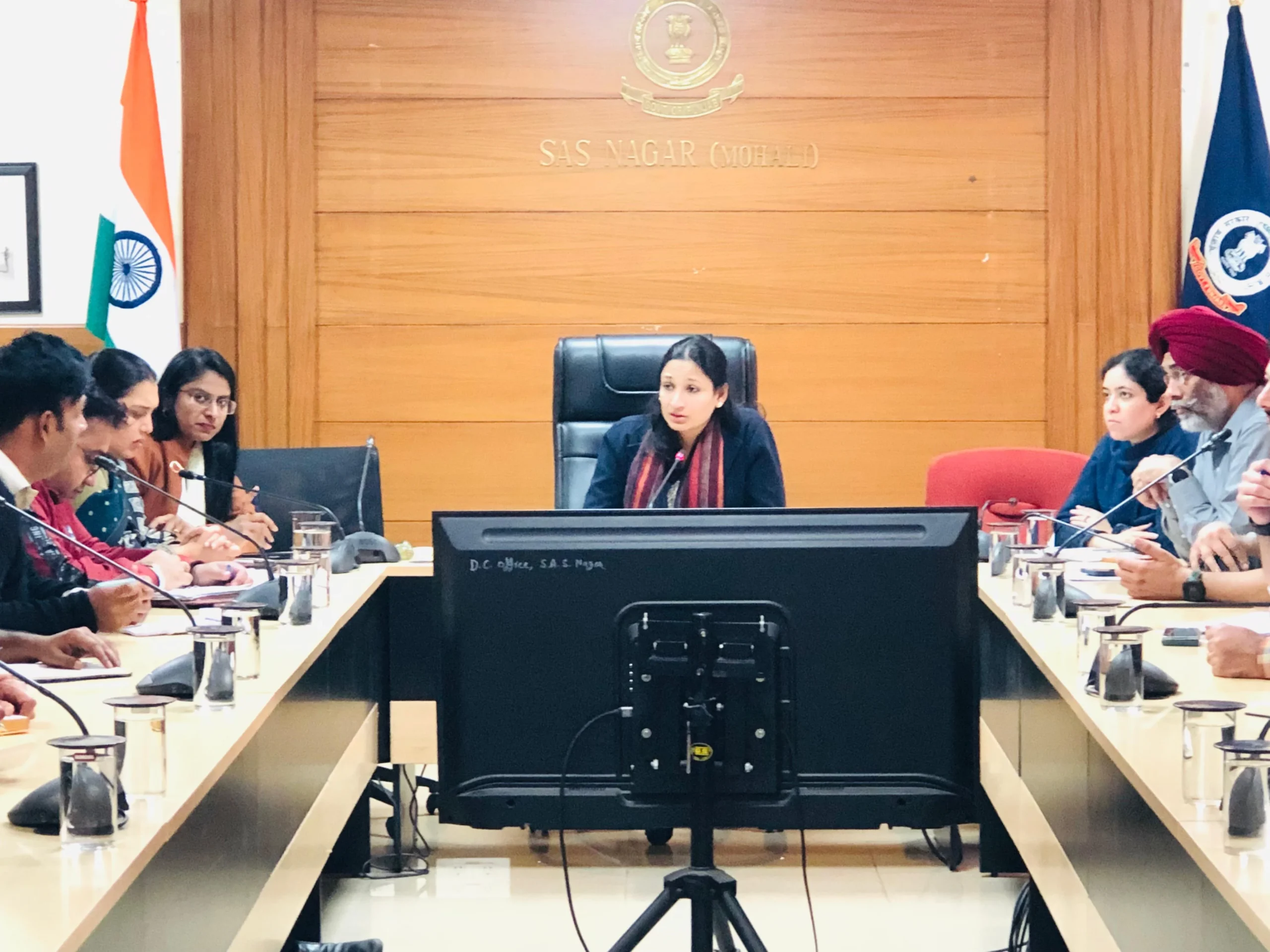 ਪੰਜਾਬ ਸਰਕਾਰ ਵੱਲੋਂ ਨੌਵੇਂ ਪਾਤਸ਼ਾਹ, ਹਿੰਦ ਦੀ ਚਾਦਰ, ਸ਼੍ਰੀ ਗੁਰੂ ਤੇਗ ਬਹਾਦਰ ਜੀ ਦੇ 350 ਸਾਲਾ ਸ਼ਹੀਦੀ ਦਿਹਾੜੇ ਮੌਕੇ ਉਲੀਕੇ ਸਮਾਗਮਾਂ ਦੀ ਲੜੀ ਵਿੱਚ SAS ਨਗਰ ਵਿਖੇ 21 ਨਵੰਬਰ ਨੂੰ ਪੁੱਜਣ ਵਾਲੇ ਨਗਰ ਕੀਰਤਨ ਦੇ ਸਬੰਧੀ ਅਗੇਤੇ ਪ੍ਰਬੰਧਾਂ ਬਾਰੇ, ਅੱਜ ਜ਼ਿਲ੍ਹਾ ਪ੍ਰਬੰਧਕੀ ਕੰਪਲੈਕਸ ਵਿਖੇ, ਡਿਪਟੀ ਕਮਿਸ਼ਨਰ ਕੋਮਲ ਮਿੱਤਲ ਵੱਲੋਂ ਵੱਖ-ਵੱਖ ਵਿਭਾਗਾਂ ਦੇ ਅਧਿਕਾਰੀਆਂ ਨਾਲ ਮੀਟਿੰਗ ਕੀਤੀ ਗਈ। ਮੀਟਿੰਗ ਦੌਰਾਨ ਉਨ੍ਹਾਂ ਕਿਹਾ ਕਿ ਤਖ਼ਤ ਸ਼੍ਰੀ ਦਮਦਮਾ ਸਾਹਿਬ ਤੋਂ 20 ਨਵੰਬਰ ਨੂੰ ਚੱਲ ਕੇ 21 ਨਵੰਬਰ ਨੂੰ ਮੋਹਾਲੀ ਵਿਖੇ ਰਾਤਰੀ ਪੜਾਅ ਲਈ ਪੁੱਜ ਰਹੇ ਨਗਰ ਕੀਰਤਨ ਵਿੱਚ ਵੱਡੀ ਗਿਣਤੀ ਵਿਚ ਸੰਗਤਾਂ ਦੇ ਪਹੁੰਚਣ ਦੀ ਸੰਭਾਵਨਾ ਹੈ। ਉਨ੍ਹਾਂ ਕਿਹਾ ਕਿ ਪ੍ਰਸਾਸ਼ਨ ਵੱਲੋਂ ਇਸ ਦੇ ਲਈ ਕੀਤੀਆਂ ਜਾਣ ਵਾਲੀਆਂ ਤਿਆਰੀਆਂ ਵਿੱਚ ਕਿਸੇ ਵੀ ਤਰ੍ਹਾਂ ਦੀ ਕੋਈ ਕਮੀ ਨਹੀਂ ਹੋਣੀ ਚਾਹੀਦੀ।ਡਿਪਟੀ ਕਮਿਸ਼ਨਰ ਨੇ ਮੀਟਿੰਗ ਦੌਰਾਨ ਵੱਖ-ਵੱਖ ਵਿਭਾਗਾਂ ਦੇ ਅਧਿਕਾਰੀਆਂ ਨੂੰ ਸੌਂਪੀਆਂ ਗਈਆਂ ਜ਼ਿੰਮੇਵਾਰੀਆਂ ਬਾਰੇ ਵਿਸਥਾਰ ਨਾਲ ਵਿਚਾਰ-ਵਟਾਂਦਰਾ ਕੀਤਾ। ਉਨ੍ਹਾਂ ਸਬੰਧਤ ਵਿਭਾਗਾਂ ਦੇ ਅਧਿਕਾਰੀਆਂ ਨੂੰ ਨਗਰ ਕੀਰਤਨ ਦੇ ਸਵਾਗਤ ਅਤੇ ਰਾਤਰੀ ਪੜਾਅ ਲਈ ਚੱਲ ਰਹੀਆਂ ਤਿਆਰੀਆਂ ਸਬੰਧੀ ਸੌਪੀਆਂ ਗਈਆਂ ਡਿਊਟੀਆਂ ਪੂਰੀ ਜ਼ਿੰਮੇਵਾਰੀ ਅਤੇ ਤਨਦੇਹੀ ਨਾਲ ਨਿਭਾਉਣ ਲਈ ਕਿਹਾ, ਤਾਂ ਜੋ ਇੰਨ੍ਹਾਂ ਸਮਾਗਮਾਂ ਨੂੰ ਸੁਚੱਜੇ ਢੰਗ ਨਾਲ ਨੇਪਰੇ ਚਾੜ੍ਹਿਆ ਜਾ ਸਕੇ।