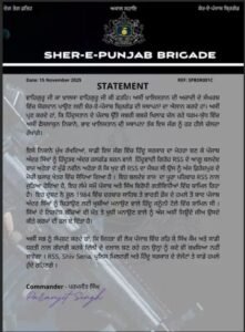 पंजाब के फिरोजपुर जिले में उस वक्त अफरा‑तफरी मच गई जब भीड़भाड़ वाले मुख्य बाजार में राष्ट्रीय स्वयंसेवक संघ (RSS) से जुड़े स्थानीय नेता के पोते नवीन अरोड़ा (32) की गोली मारकर हत्या कर दी गई। वारदात को बाइक सवार दो अज्ञात हमलावरों ने अंजाम दिया और मौके से फरार हो गए। घटना के बाद पूरे शहर में तनाव फैल गया है, जबकि पुलिस टारगेट किलिंग के एंगल से मामले की जांच कर रही है।घटना के कुछ घंटों बाद सोशल मीडिया पर खालिस्तानी संगठन शेर-ए-पंजाब ब्रिगेड की ओर से एक पोस्ट वायरल हुई, जिसमें नवीन अरोड़ा की हत्या की जिम्मेदारी ली गई है। पोस्ट में लिखा गया है कि संगठन “खालिस्तान की स्थापना तक जंग जारी रखेगा” और RSS से जुड़े लोगों पर हमले होते रहेंगे।हालांकि पुलिस और जांच एजेंसियों ने इस पोस्ट की असली पुष्टि नहीं की है।