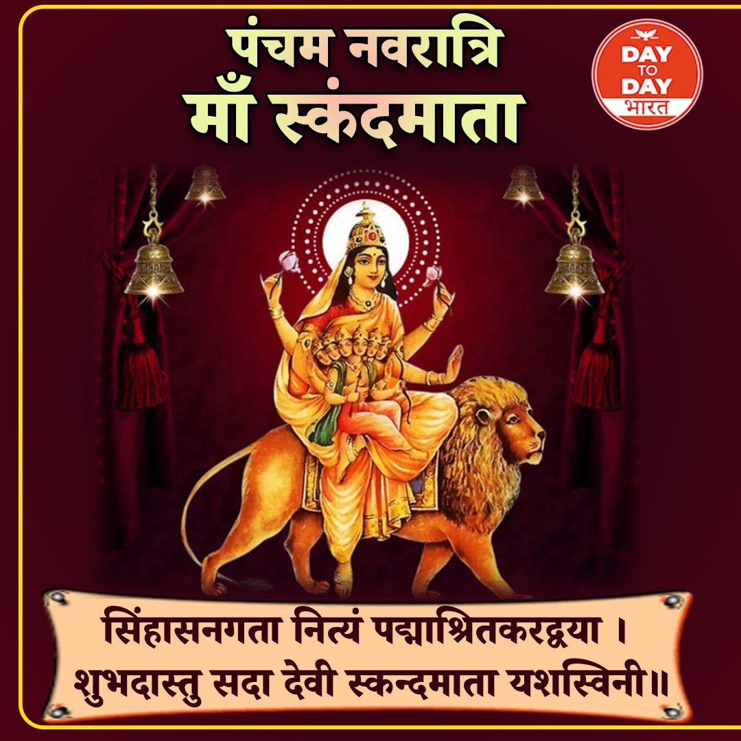 आज नवरात्रि पर्व का पांचवा दिन है और आज के दिन देवी दुर्गा के पांचवे स्वरूप मां स्कंदमाता की पूजा की जाती है। मां के इस स्वरूप को सिंह पर सवार और चार भुजाओं वाली देवी के रूप में वर्णित किया गया है।