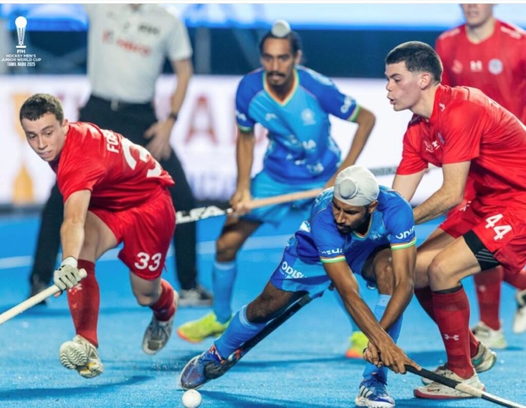 चेन्नई के मेयर राधाकृष्णन हॉकी स्टेडियम में शुक्रवार, 28 नवंबर 2025 को FIH हॉकी मेन्स जूनियर वर्ल्ड कप का भव्य शुरूआत हुई। घरेलू दर्शकों से भरे स्टेडियम में भारतीय जूनियर हॉकी टीम ने टूर्नामेट मे जोरदार शुरुआत की और चिली को 7-0 के विशाल अंतर से हराकर अपने खिताबी इरादे साफ कर दिए।भारत की जीत के नायक रहे रोसन कुजूर और दिलराज सिंह, जिन्होंने दो-दो गोल दागकर टीम को मजबूत बढ़त दिलाई। इनके अलावा अजीत यादव, अनमोल एक्का और कप्तान रोहित ने भी एक-एक गोल कर स्कोर बोर्ड को 7 तक पहुंचाया।