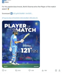 टीम इंडिया ने इस मुकाबले में गेंद और बल्ले दोनों से उत्कृष्ट प्रदर्शन किया। हर्षित राणा के चार विकेट और रोहित-विराट की बल्लेबाजी ने भारतीय टीम को निर्णायक जीत दिलाई। यह जीत केवल मैच जिताने वाली नहीं बल्कि आत्मविश्वास बढ़ाने वाली भी साबित हुई, खासकर ऑस्ट्रेलियाई धरती पर।हालांकि, सीरीज 2-1 से ऑस्ट्रेलिया के नाम रही, लेकिन भारतीय टीम ने अंतिम मुकाबले में अपनी ताकत और क्षमता का शानदार प्रदर्शन करके फैंस को रोमांचित किया।
