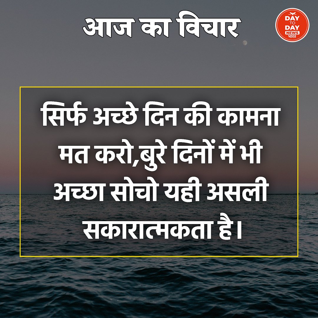 आज का विचार सिर्फ अच्छे दिन की कामना मत करो,बुरे दिनों में भी अच्छा सोचो यही असली सकारात्मकता है।
