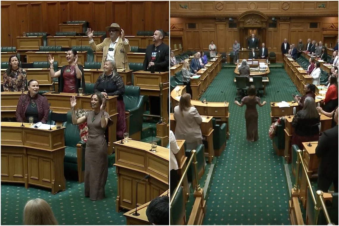 एक सांसद के पहले भाषण के बाद न्यूज़ीलैंड की संसद में एक अनियोजित हाका के कारण कामकाज ठप्प हो गया। गुरुवार यानि 9 अक्टूबर को संसद कुछ समय के लिए स्थगित कर दी गई, जब माओरी पार्टी की नई सदस्य के भाषण समाप्त होने के बाद सार्वजनिक गैलरी में बैठे लोगों ने हाका करना शुरू कर दिया। दरअसल ते पाटी माओरी की ओरिनी कैपारा सितंबर में एक खाली सीट के लिए संसद के लिए चुनी गईं और उन्होंने गुरुवार को सदन में अपना पहला भाषण दिया। भाषण के ठीक बाद, सदन के सभी सांसदों और सार्वजनिक गैलरी में मौजूद लोगों ने उनके आगमन का जश्न मनाने के लिए एक इस तरीके से माओरी गीत गाया और वैसे ही स्टेप्स संसद के करने शुरू कर दिए।