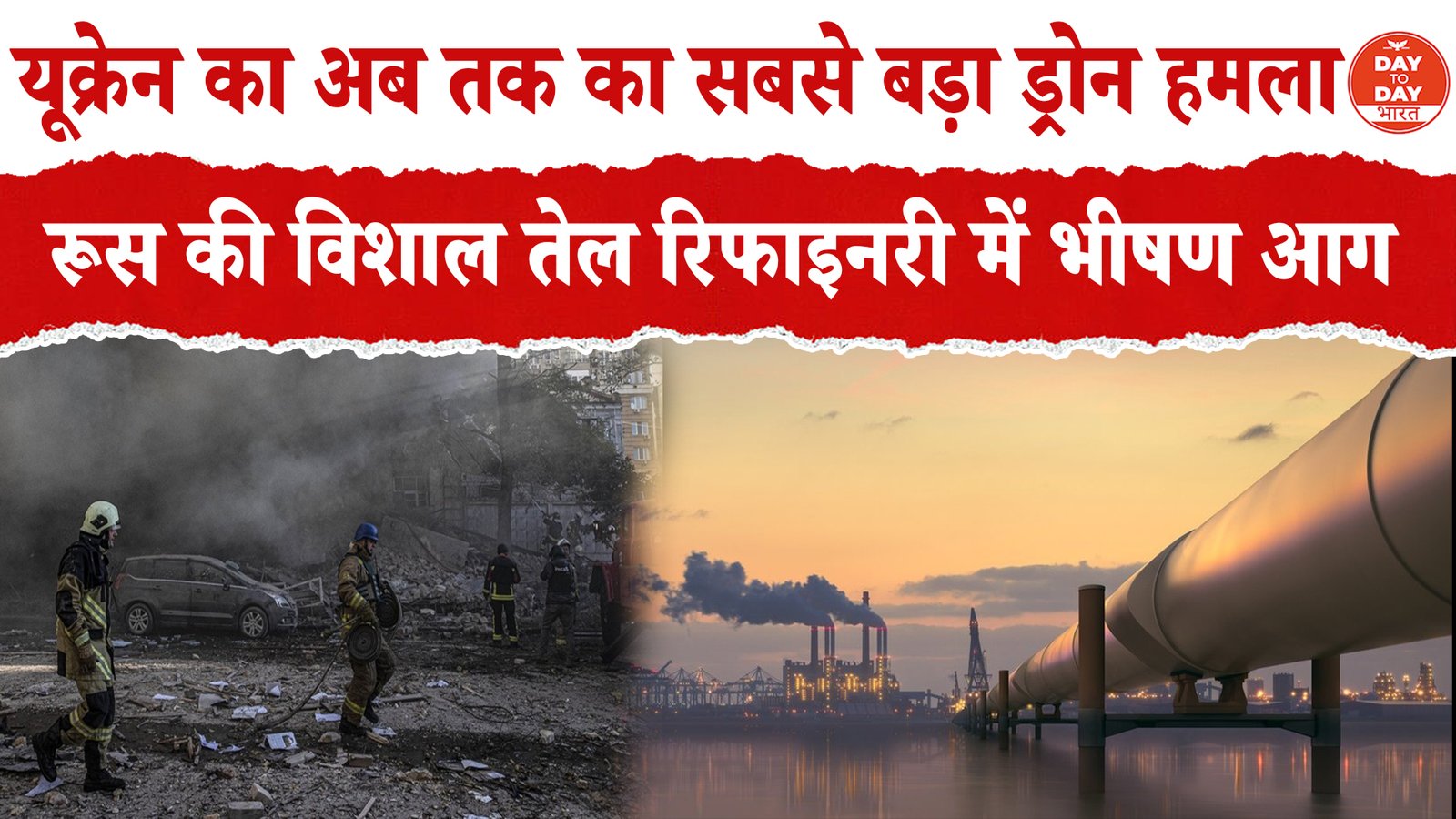 RUSSIA-YUKRAINE WAR :यूक्रेन का अब तक का सबसे बड़ा ड्रोन हमला,रूस की विशाल तेल रिफाइनरी में लगी भीषण आग