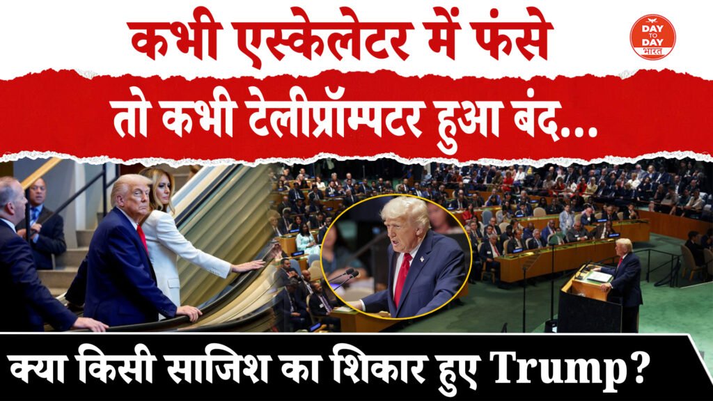 अमेरिकी राष्ट्रपति डोनाल्ड ट्रंप कि जिन्होंने UN में तीन घटनाओं- एस्केलेटर रुकने, टेलीप्रॉम्प्टर बंद होने और आवाज गड़बड़ी को साजिश बताया। उन्होंने सीक्रेट सर्विस से जांच की मांग कर डाली है।